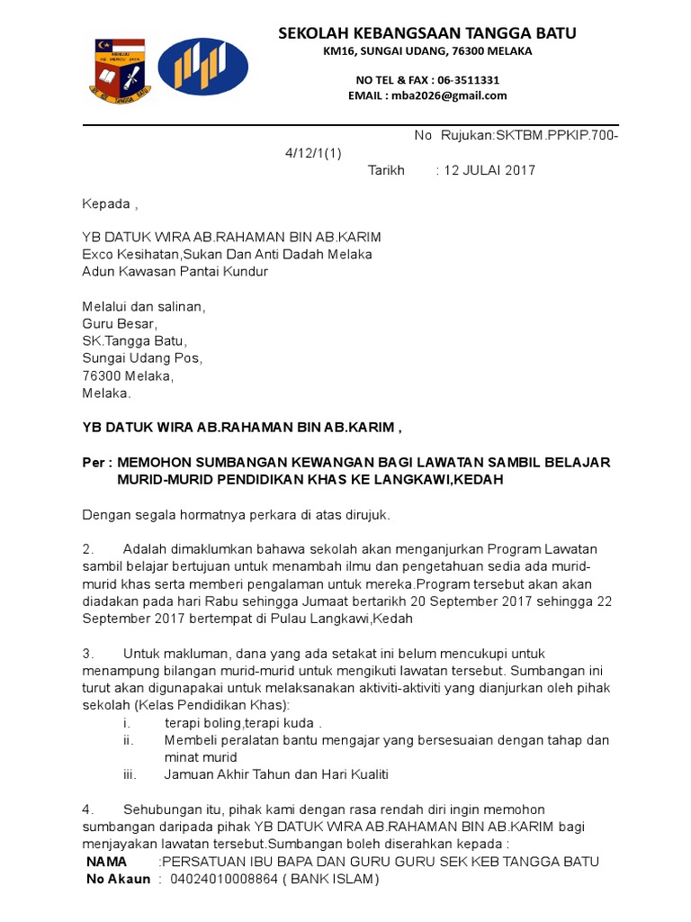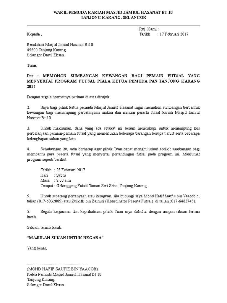 The collection that consisting of chosen picture and the best among others. PERSATUAN KELAB GURU DAN KAKITANGAN SMK TELOK GADONG KLANG Ruj. Contoh surat mohon sumbangan susunan kata kata yang baik dan menarik haruslah digunakan.